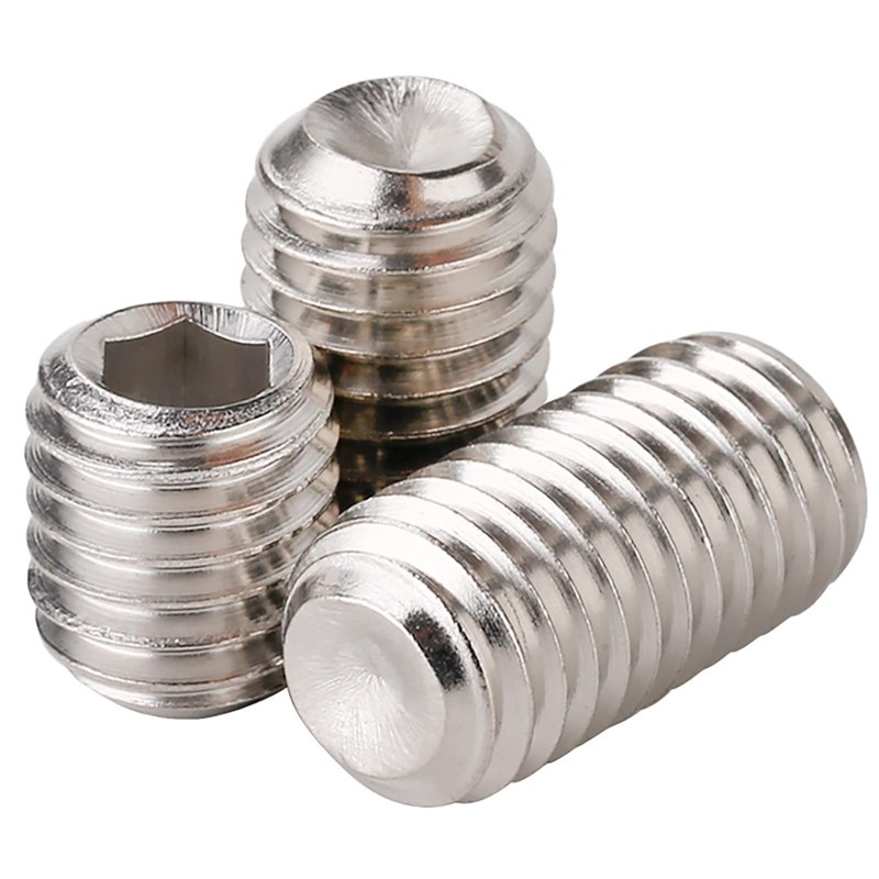 - 🔩【Type】: (Tolerance:±0.005mm) Standard SAE Hex Socket Cup Point Set Screws, all screw threads have clean cut edges and no sharp edges. Cup-shaped tip cuts into surface, preventing component from loosening, Design provides good vibration resistance. can be driven still further to provide even more torque and gripping force.