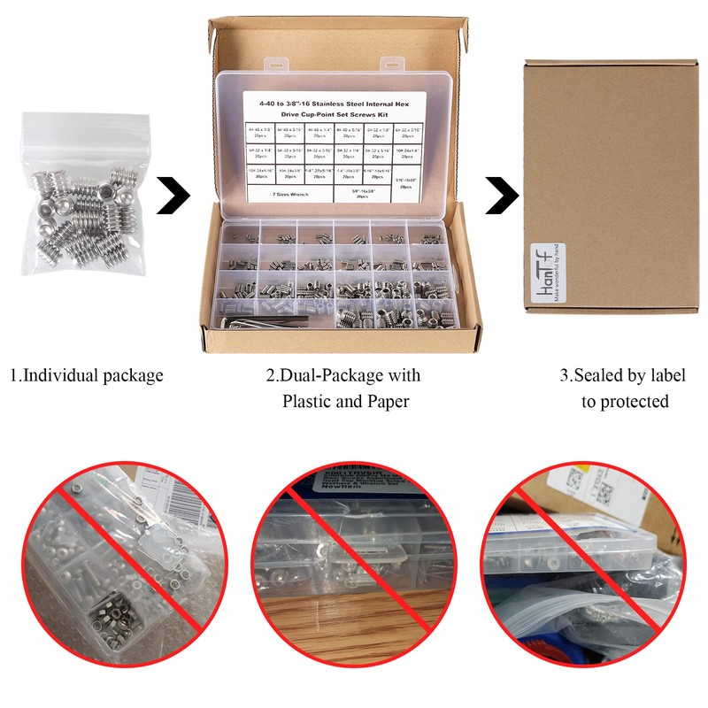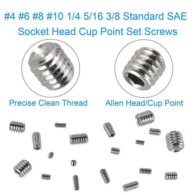 - 🔩【Portable & Storage】:All of UNC #4-40, #6-32, #8-32, #10-24, 1/4"-20, 5/16"-18, 3/8"-16,Standard SAE Allen Head Cup Point Set Screws are packed into a sturdy transparent box organizer. Not only sufficient number to meet your daily use,but also 7 Pcs relevant hex wrenches are included for easy to handle.