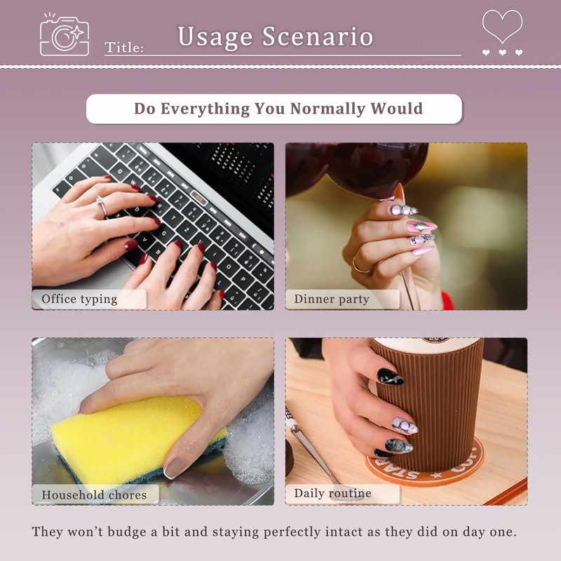 - Unleash your inner beauty queen with these high-quality press on nails that offer both style and durability. Whether for a special occasion or daily wear, these nails will leave you feeling fabulous!