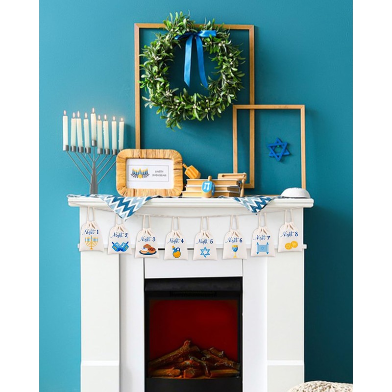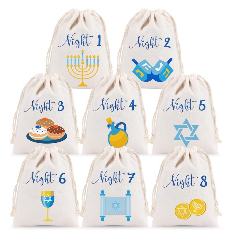 Hanukkah Advent Calendar 2024, 8 Nights of Hanukkah Burlap Gift Bags, Chanukah Countdown Drawstring Goodie Bags, Festival of Lights Linen Treat Bags, Hanukkah Decorations Reusable Party Favors