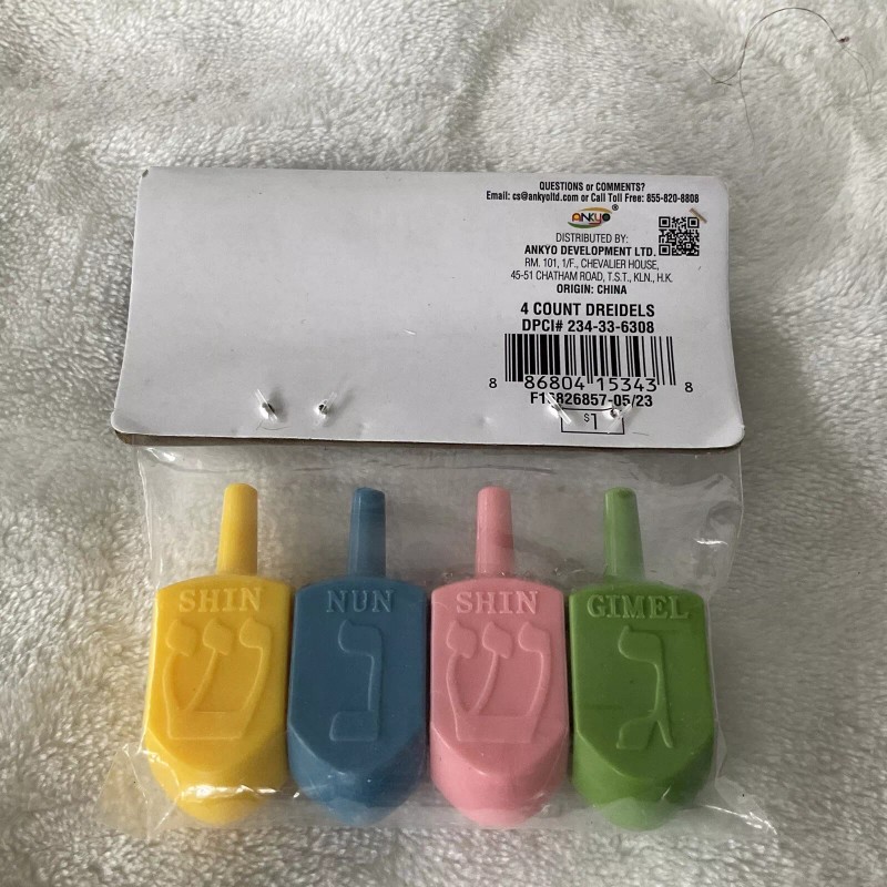 Hanukkah Dreidel Set 4 Colorful Pink Yellow Blue Green Plastic New In Package