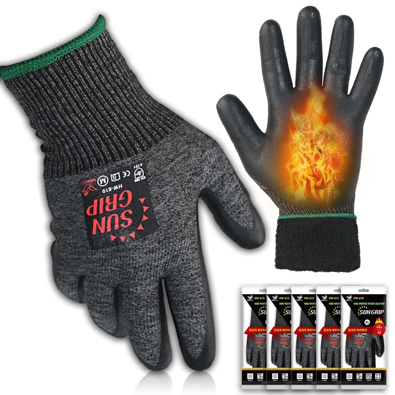 HANWOO SUNGRIP Winter Thermal NBR Work Gloves 5 Pairs (Medium)