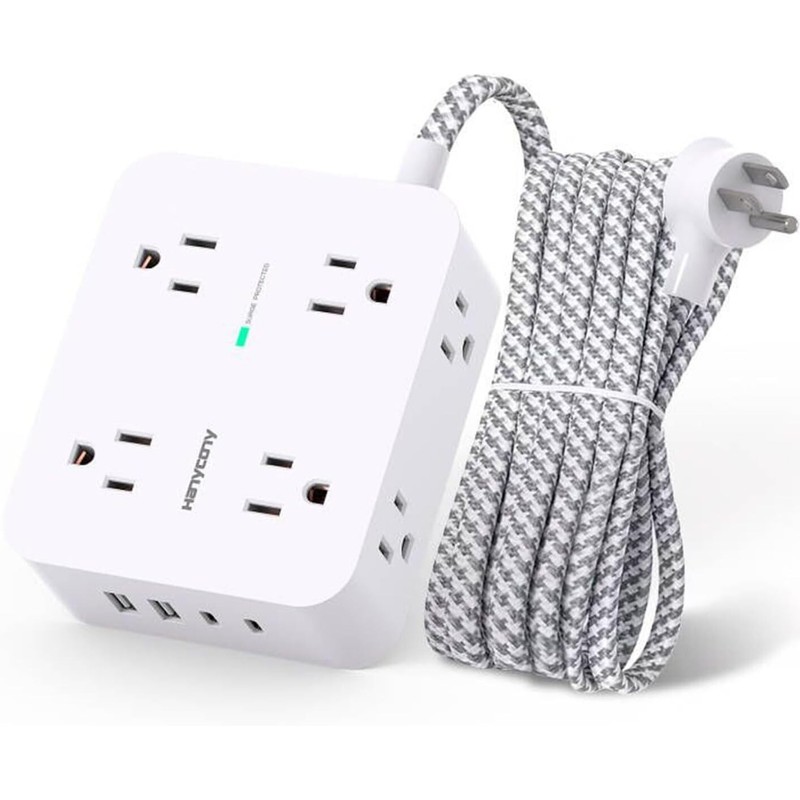 HANYCONY Surge Protector Power Strip - 8 Outlets 4 USB (2 USB C) Charging Por...
