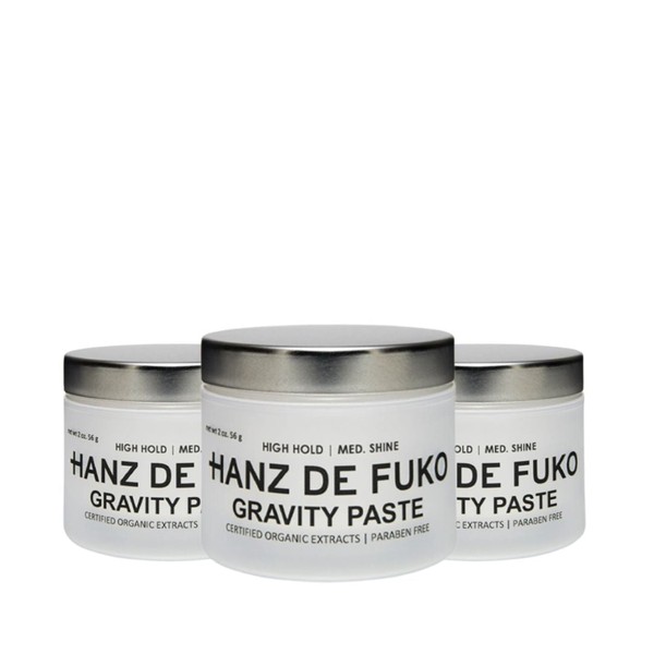 The Hanz De Fuko Gravity Paste Trio Bundle is the ultimate styling solution for achieving gravity-defying hairstyles. This exclusive bundle includes three jars of the renowned Hanz De Fuko Gravity Paste, each containing 56g of the innovative styling product. Known for its unique "Super-Grip" technology, Gravity Paste provides a high-hold, medium shine finish that allows you to create and maintain any hairstyle with ease. Perfect for both casual and formal looks, this trio bundle ensures you always have enough product on hand to keep your hair looking its best. What is included in Hanz De Fuko Gravity Paste Trio Bundle? • x3 Hanz De Fuko Gravity Paste 56g What are the features and benefits of Hanz De Fuko Gravity Paste Trio Bundle? Hanz De Fuko Gravity Paste: This innovative styling paste is designed with "Super-Grip" technology, providing a high-hold, medium shine finish that allows for versatile styling. Its unique formula activates upon contact with the hair, offering a pliable hold that lasts all day without flaking or leaving residue. Ideal for creating structured styles or adding texture to any hair type, Gravity Paste is a must-have for anyone looking to elevate their hair game. Who is Hanz De Fuko Gravity Paste Trio Bundle for? This product is perfect for individuals seeking a reliable, high-performance styling solution to achieve and maintain a variety of hairstyles.