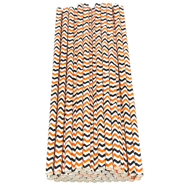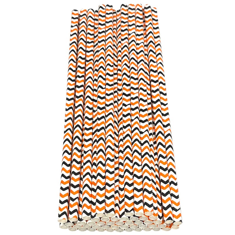 Haobase 50Pcs Paper Drinking Straws, Biodegradable Paper Straws for Drinking Cocktail, Coffee, Cold Drinks (Three-Coloured) (White/Orange Black Ripples)