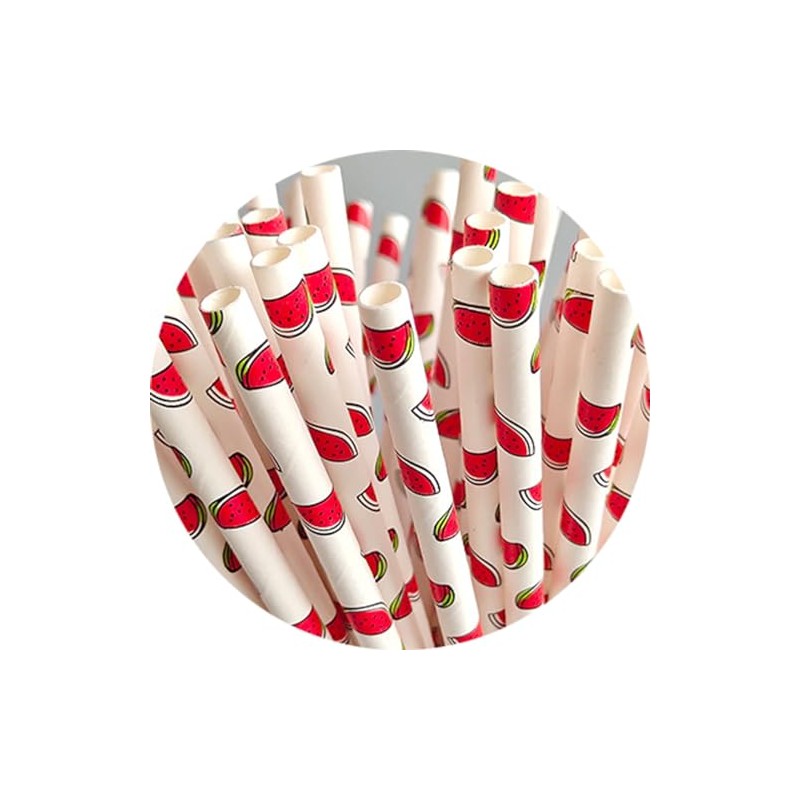 Haobase Pack of 50 Paper Straws, Biodegradable Paper Straws for Drinking Cocktail, Coffee, Cold Drinks (Fruit Pattern) (Watermelon Pattern)