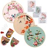 HAOCOO 3 Sets Embroidery Kit for Beginners, Cross Stitch Kits with Flower&Bird Pattern and Instructions, Full Range of Embroidery Cloth, Embroidery Hoops, Color Threads and Tool (Flower&Bird)