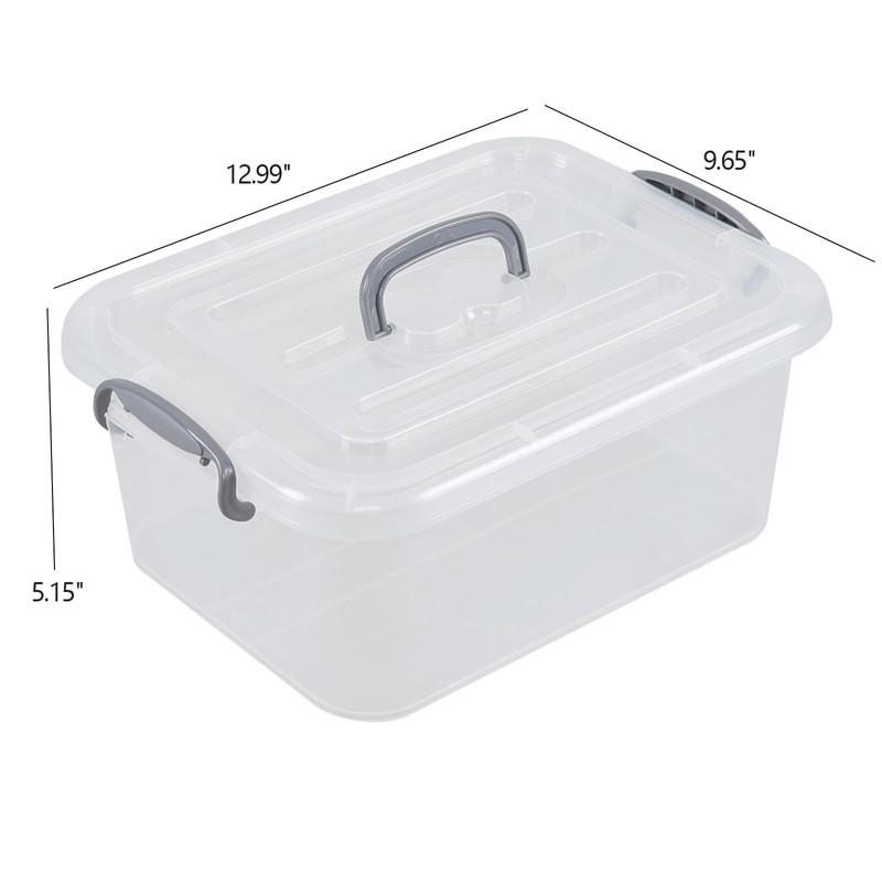 - Latches on both sides can lock the lid with the box to make a dust-proof inside for stored items, and the top handle provides comfortable grip when moving and lifting the plastic box