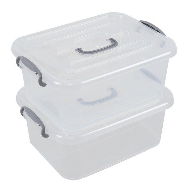 Haodehen 8 Quart Clear Plastic Storage Container with Latching Lid, 2-Pack Stackable Storage Organizing Boxes with Handle