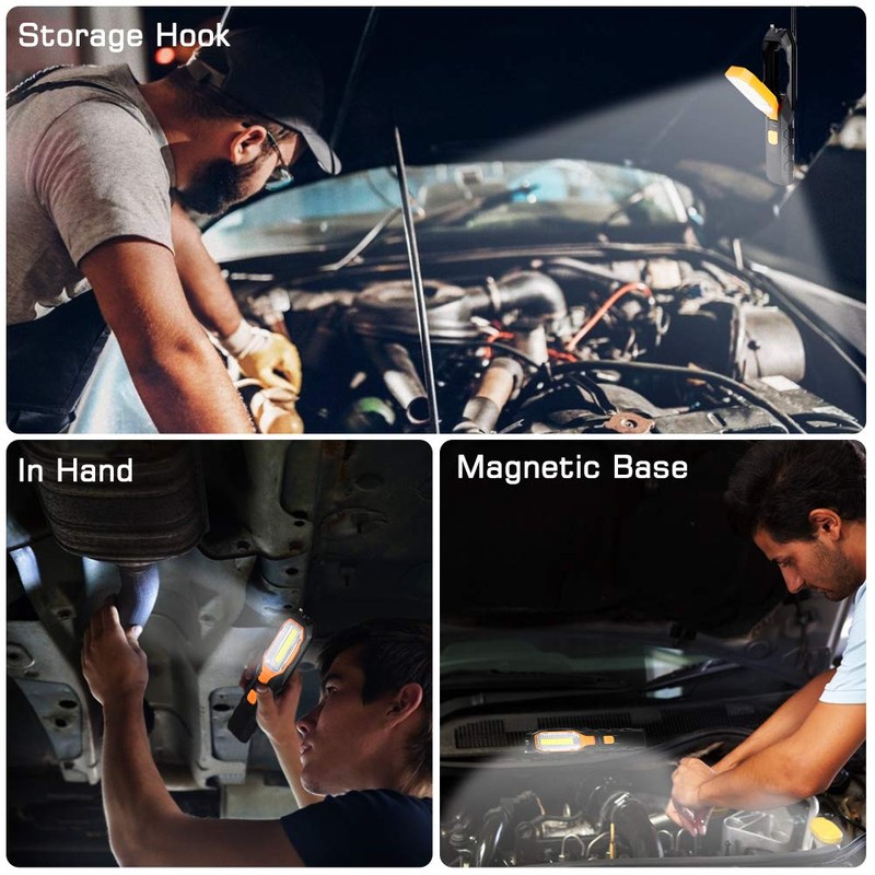 Haofy LED Work Light Foldable Handheld Portable Flashlight Lamp USB Rechargeable Super Bright Waterproof Flashlight Lamp Emergency Inspection Lamp 4 Lighting Modes, Phone Charging Mobile Power Power Bank, With Magnet & Hook