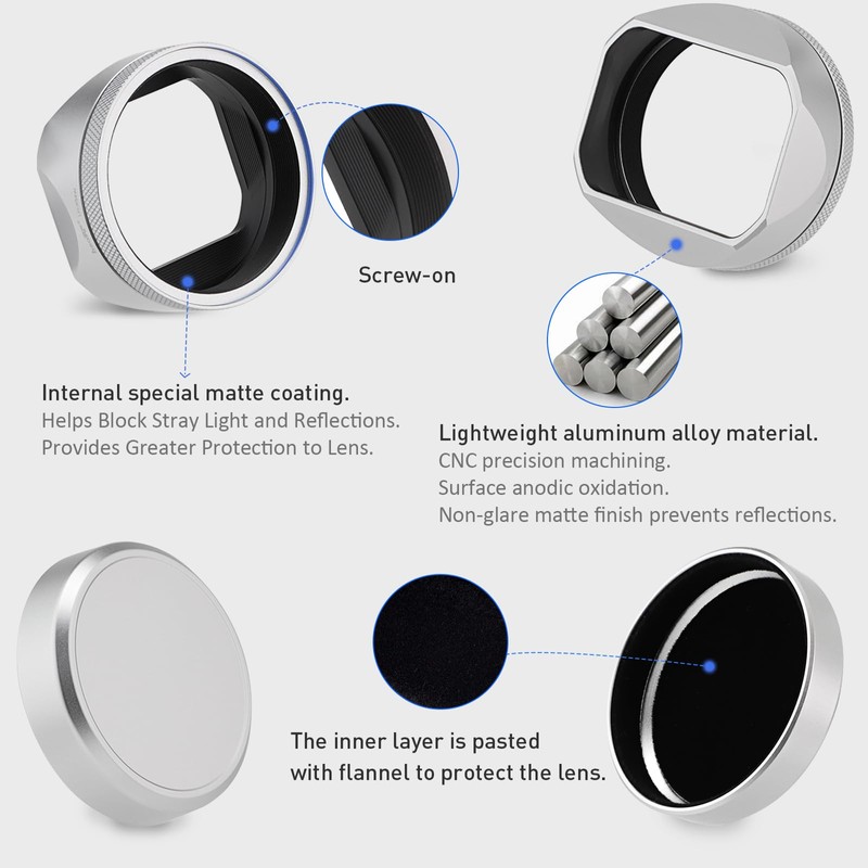 - Square Metal Lens Hood compatible with Fujifilm X100V X100F X100T X100S X100 X70 camera.