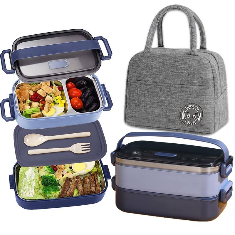 - Lunch box kit: the package includes: 1 x 1100 stainless steel lunch box, 1 x lunch bag. The Bento boxes are made of high-quality PP and 304 stainless steel, safe, no BPA, odourless. The Bento boxes come with a handle and 2 stainless steel containers in 500 ml and 600 ml, 3 compartments, keep your food clean and tidy without mixed flavours.