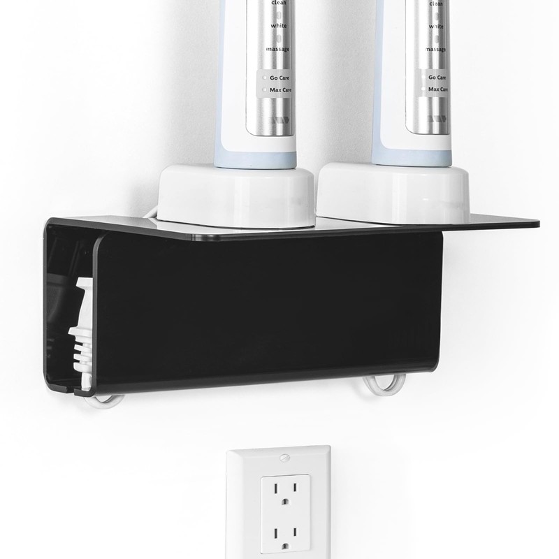 Haohaio Acrylic Electric Toothbrush Holder for Bathroom,Wall Mounted with Hidden Cable Management, Secure and Non-Slip Design, Won't Fall Off for Reliable Stability -Black