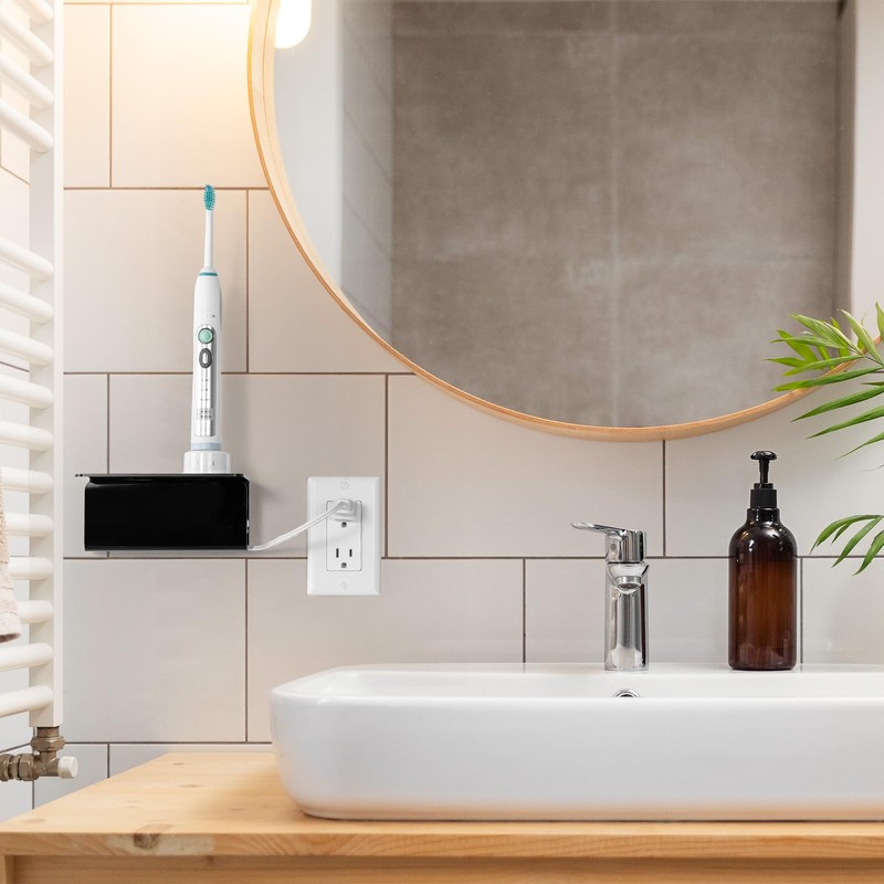 This electric toothbrush holder for bathroom use is ideal for tight spaces like countertops, providing a perfect solution for anyone seeking a reliable toothbrush holder for electric toothbrushes. Its thoughtful design includes hidden cable storage, making it a stylish wall mount electric toothbrush holder that keeps charging cords out of sight and promotes a clean and tidy environment.