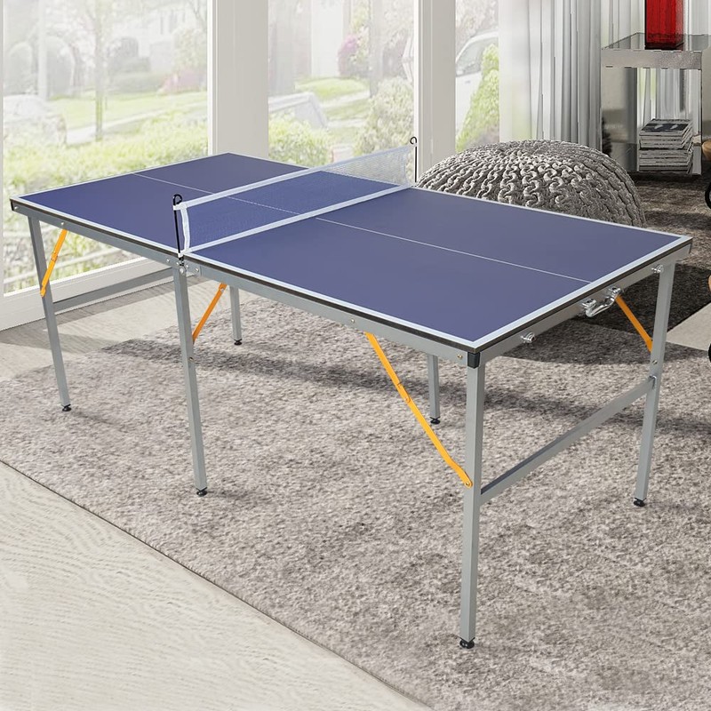 HaoKang Mid-Size Table Tennis Table 6Ft Ping-Pong Table Set Foldable & Portable Table Indoor Outdoor for Family Game