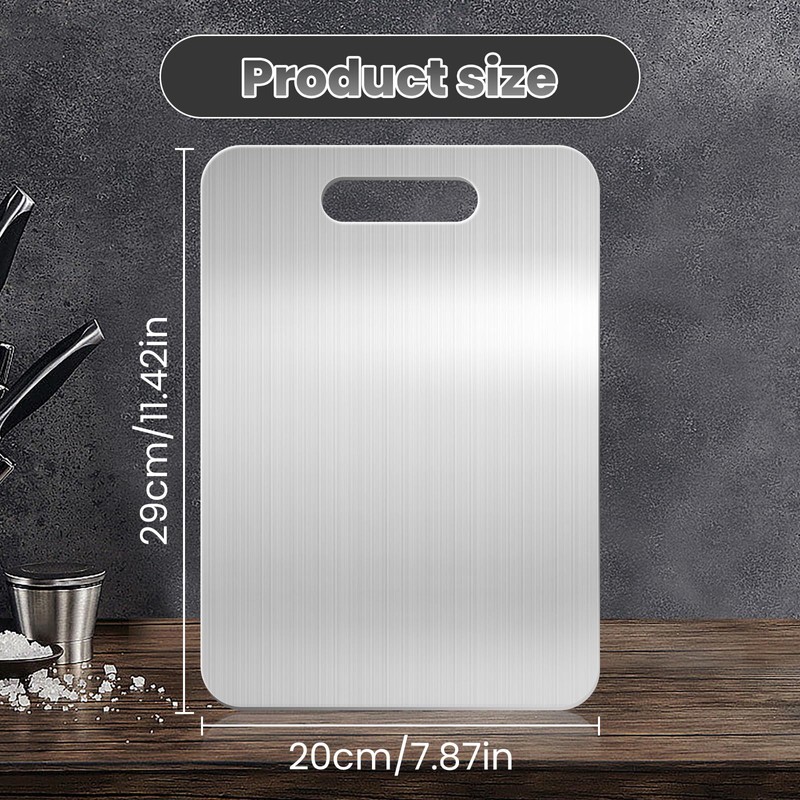 - 🍳 【Food Grade Materials】 Our chopping boards are made of a mixture of high quality stainless steel and titanium alloy. The addition of titanium alloy greatly enhances the hardness of the cutting board, making it perfect for chopping, slicing, dicing and other kitchen tasks.
