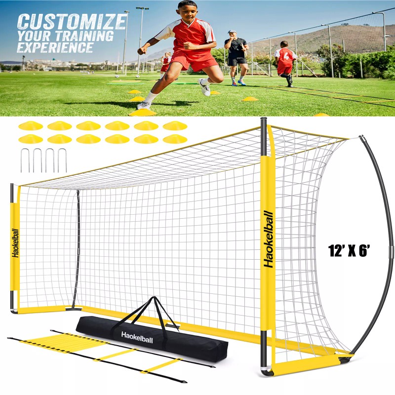 Haokelball 12x6ft Portable Soccer Goal Net for Teens Adults with Agility Ladder & 12 Cones