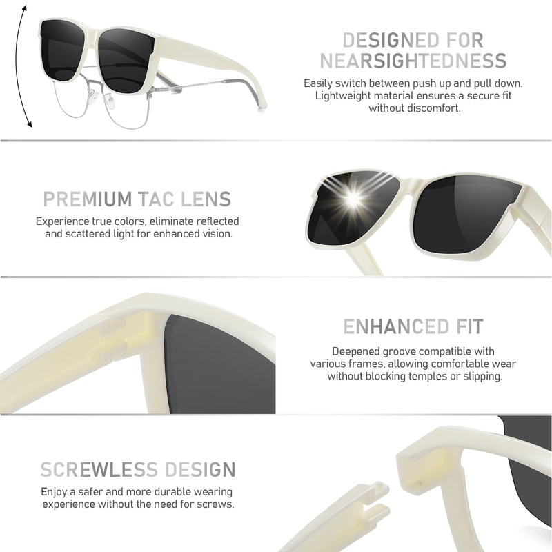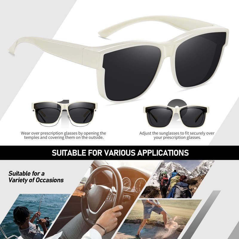 Crafted to fit seamlessly over prescription glasses, our sunglasses offer comprehensive glare protection. The ergonomic design ensures a comfortable fit, reducing eye fatigue during extended wear.