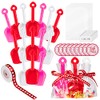 Haooryx 73Pcs Mini Shovels Toy Gift Set, Plastic Shovel Toy White Red Pink Mini Sand Scoop Shovel Toy Party Gift, 18 Set Shovels I Dig You Stickers Labels Clear Bags and 1 Heart Ribbon