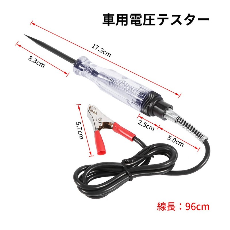 - Easy to Use: Simply connect the alligator clip to the ground and use the probe to test the circuit. If the indicator light illuminates, it indicates the presence of electricity, with fast response. The circuit testing range is from 6V to 24V.