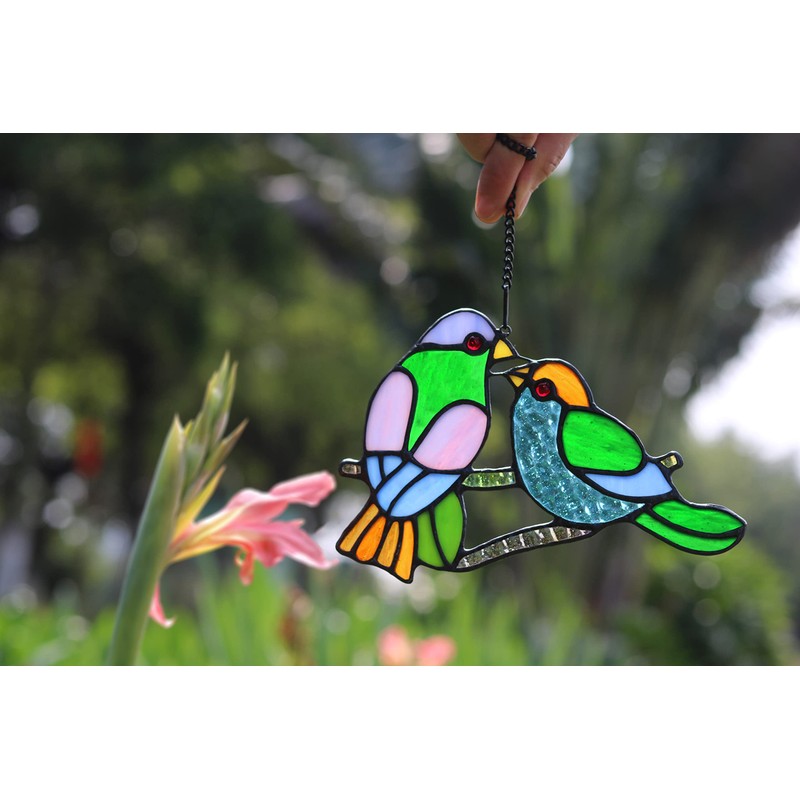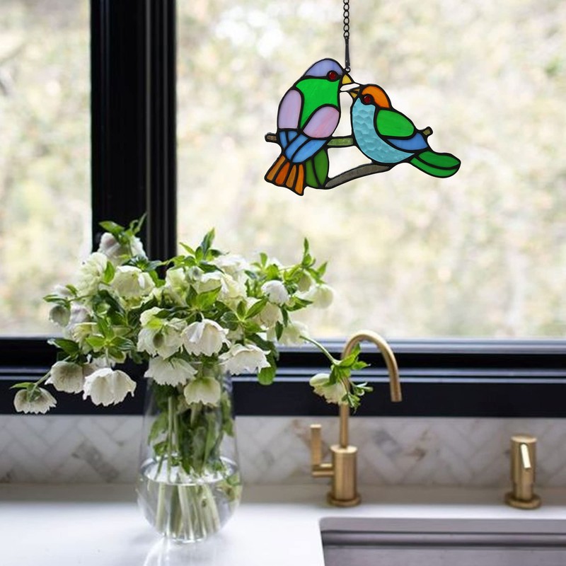 HAOSUM Amante Birds Tiffany - Adorno para colgar ventanas con diseño de pájaros para decoración de ventanas, regalos hechos a mano para mamá, amigos (4.7 x 7.1 pulgadas)