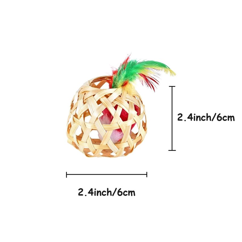 - Durable and Safe: Made from high-quality, non-toxic materials, this cat toy is both safe and durable. The sturdy bamboo cage withstands rough play, while the soft plush mouse and feathers are gentle on your cat's paws and teeth