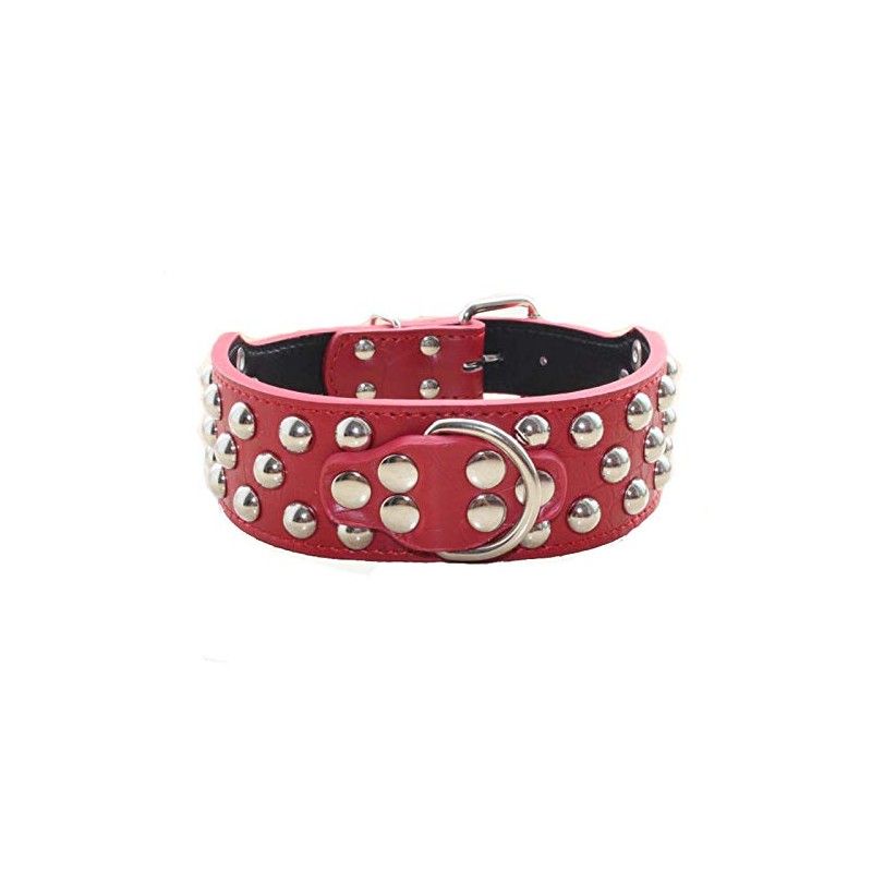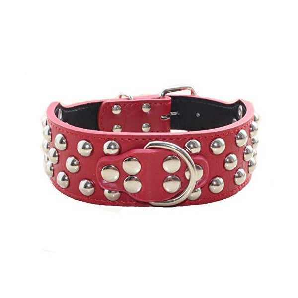 haoyueer 2" Width 3 Rows Silver Rivets Studded Leather Dog Collars for Medium/Large Dogs Pitbull Mastiff Boxer Bully … (L, Red)