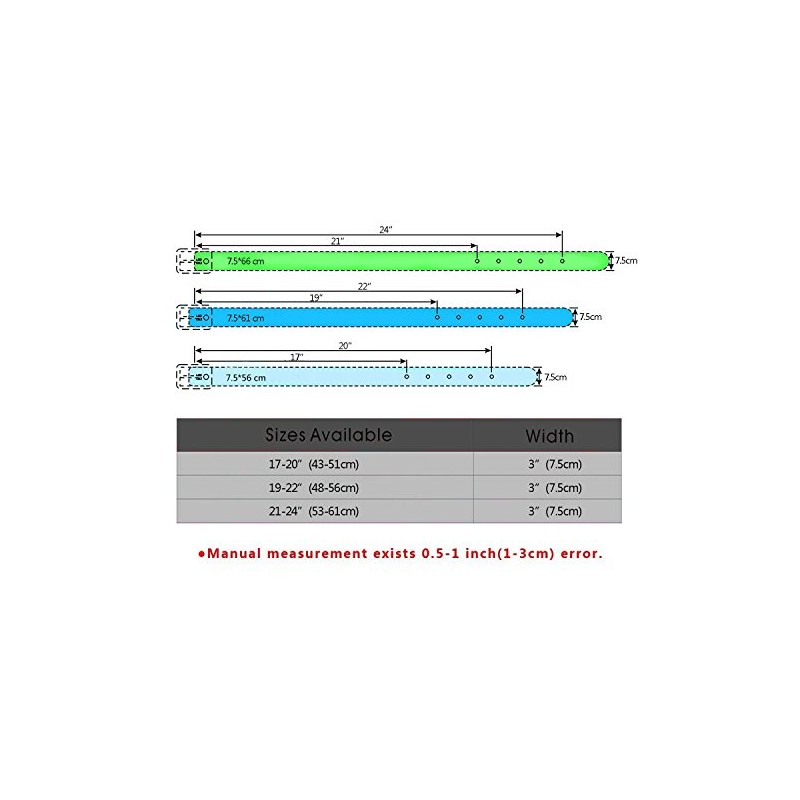 - Collars Size: Medium size for Wide 3 inches, Length 22 inches(7.5*56CM) Neck 17-20 inches,Large size for Wide 3 inches, Length24 inches(7.5*61CM) Neck 19-22 inches,X-Large size for Wide 3 inches, Length26inches(7.5*66CM) Neck 21-24 inches Leash Size:28 inches(70cm) total length,Chain:5mm diameter,20 inches(50cm)