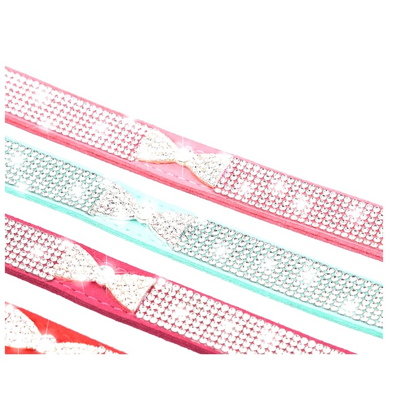 haoyueer Haoyueer Cute Dazzling Sparkling Elegant Fancy Soft Suede Leather Bling Rhinestone Crystal Jeweled Pet Cat Dog Puppy Collar Dog Leash Combo Set (L, Purple-4)