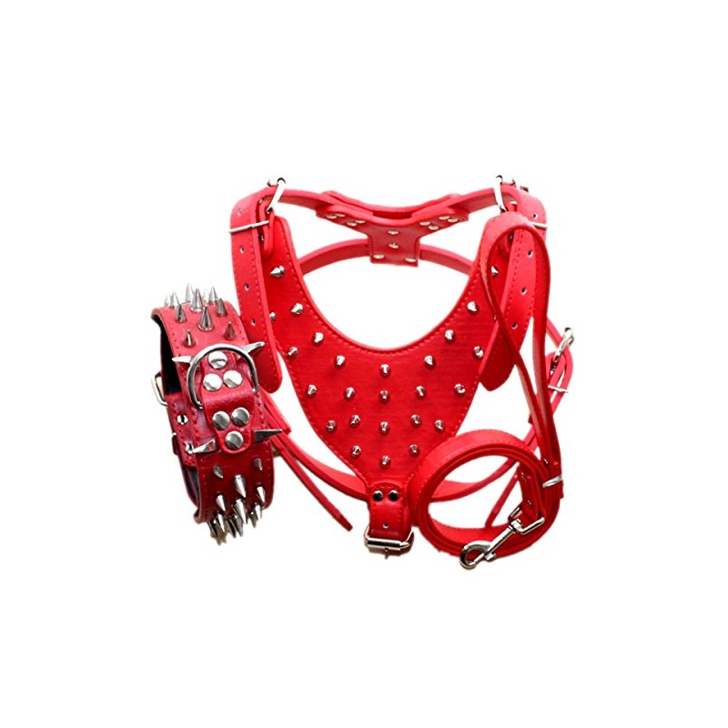 Haoyueer Leather Sharp Spiked Studded Dog Collars, Harnesses & Leashes 3Pcs Matching Set for Medium & Large Dog Pit Bull,Mastiff, Boxer, Bull Terrier