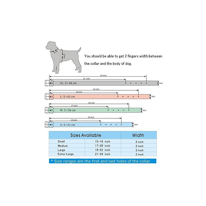 Size L for 2" wide, 24" long, neck girth 19-22".