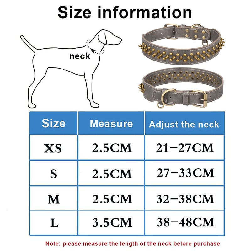 - ♥【Protection】this amazing cool designed Spiked dog collars. A line of bullet rivets studded on, sturdy,strong,help to protect your dog against other dog’s attacking.