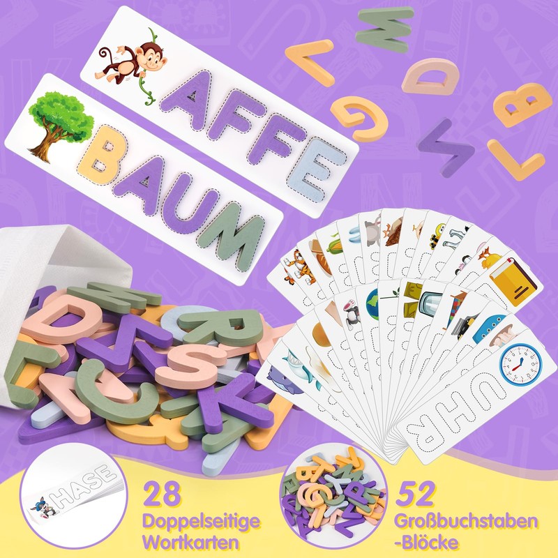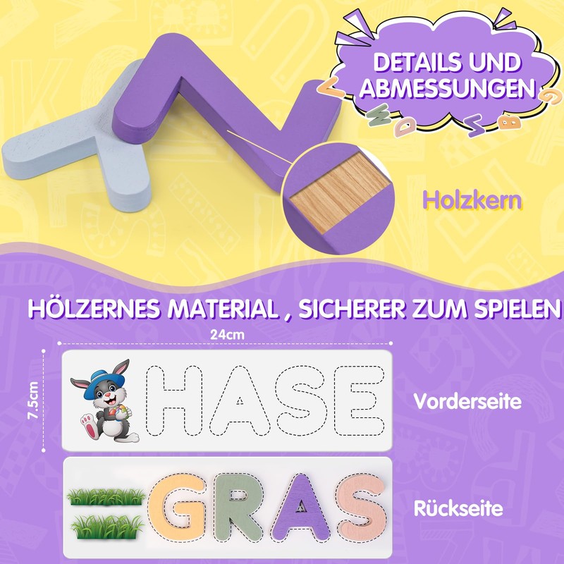 - LEARN NEW THINGS PLAYFULLY - Puns promote memory performance, strategic thinking, hand-eye coordination, spelling, concentration and word recognition. It can be used as a learning aid for preschool children, first graders and second graders, whereby the children learn German in addition to other skills.