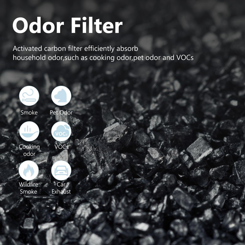 • 【Activated Carbon Filter】The activated carbon filter layer helps to absorb household odors such as cooking odors,pet odors,smoke and VOCs