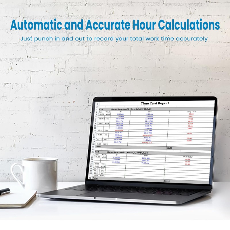 - Auto And Accurate Hours Calculations: No need to spend time calculating hours by hand, working hours are totaled automatically. Say goodbye to costly paper cards, messy ink ribbons.