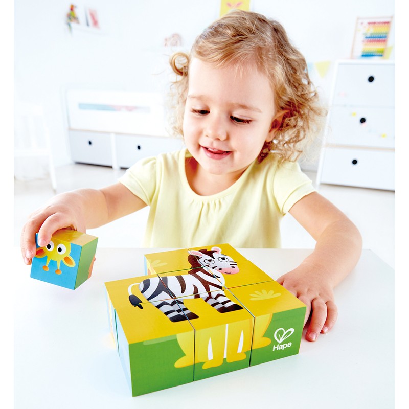 Hape Farm Animal Block Puzzle – 9-Piece Wooden Puzzle Set for 6 Animals, Durable, 2Y+