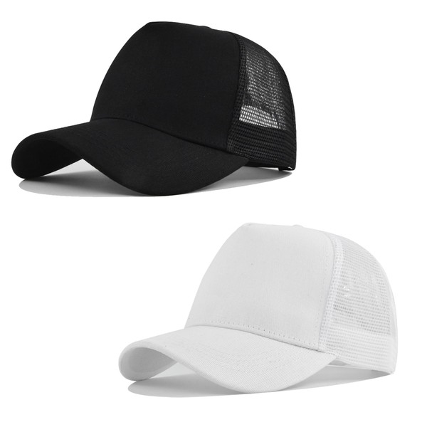 HAPEE Mens 2/3 Pack Trucker Classic Snapback Baseball Caps, B-2P04-Black White