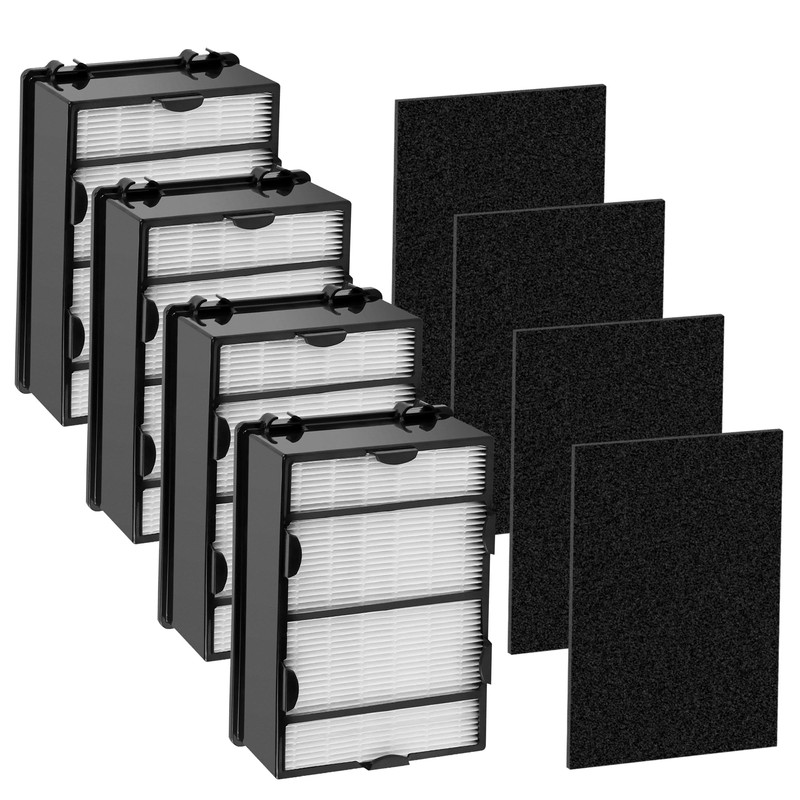 - 【VALUE PACKAGS】:Package includes 4 x H13 True HEPA Filters and 4 x Activated Carbon Filters. For the best performance, it is recommended to replace the HEPA filter every 6-8 months, replace the activated carbon pre-filter every 2-3 months for the best performance (depending on your usage and environment), and obtain higher filtration performance for long-term use.