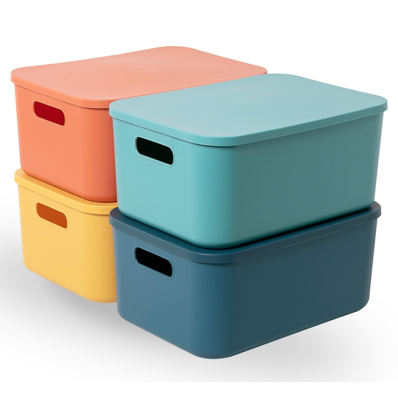 - 【Durable and Sturdy】Made of durable, sturdy plastic, BPA-free, Lightweight and Durable. 4 selected colors add a stylish and cheerful touch to any surrounding décor, and you can distinguish your own stuff according to the different color bins.