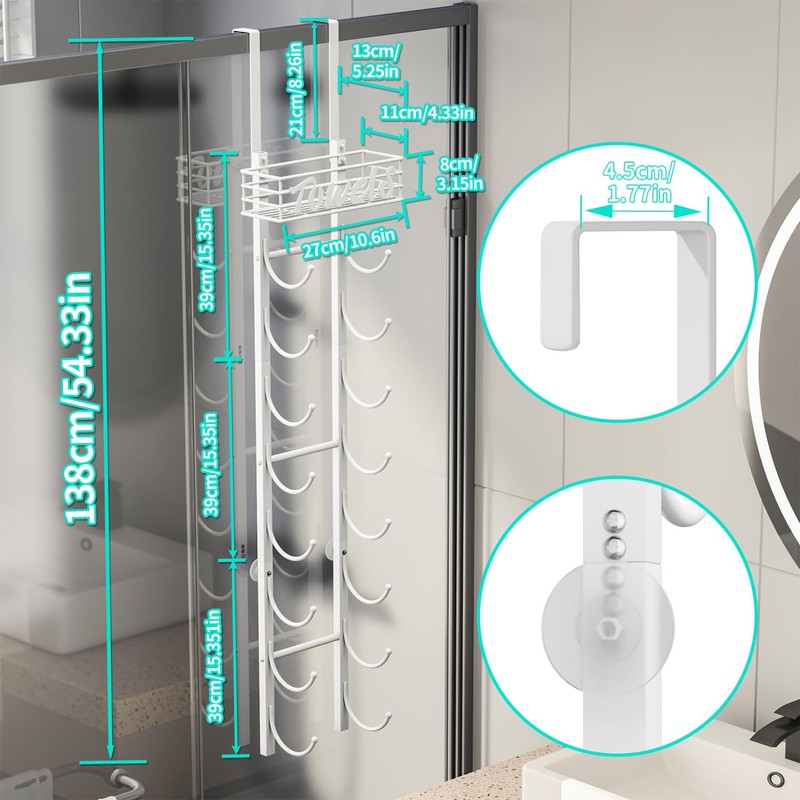 - [Sturdy and Durable]: Constructed from robust iron wire, the over the door towel holder undergoes durable rust-resistant treatment, ensuring long-lasting durability, rust resistance, and resistance to deformation, making it ideal for use in humid bathrooms