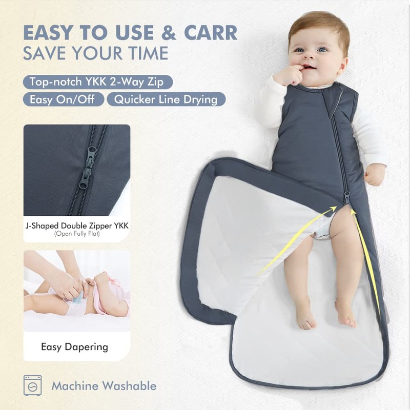 - [Easy to Use & Care]: 2-Way YKK Zipper J-Shaped opens flat fully or unzips the lower half for easier diaper changes and quicker line drying. Our wearable blanket baby is Machine Washable.