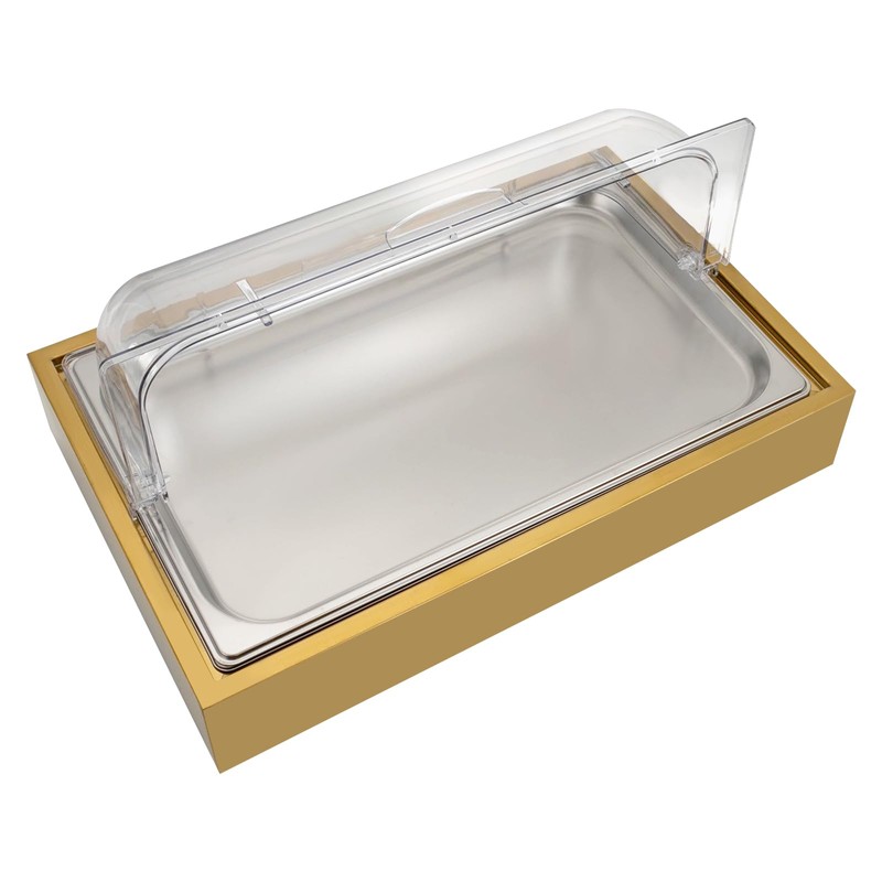HAPPCUCOE Ice Food Serving Display Tray, 6L Stainless Steel Ice Serving Tray with Lid,Cooling Food Dishes Display Plate for Outdoor Buffets, Parties,Gold