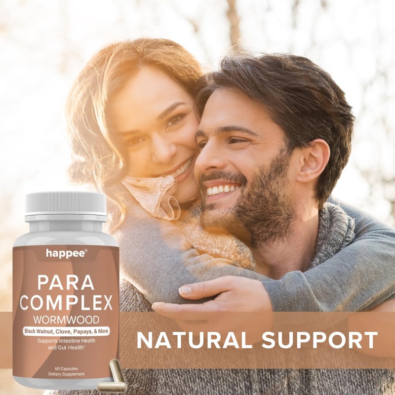 Happee ParaComplex Intestinal Guard for Humans with Wormwood Black Walnut Cloves Garlic & More C Complete Herbal Cleanse for Gut Health & Digestive Balance C 60 Capsules