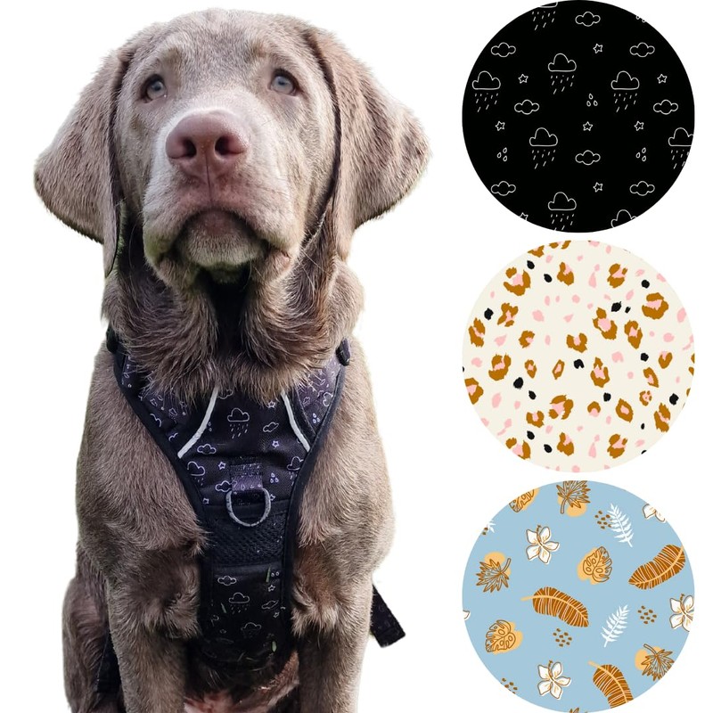 Happi Doggi® The Ultimate Everyday Dog Harness, No-Pull, Adjustable, Reflective, Front/Back Lead Attachments, Control Handle (L - Neck: 40-60cm | Chest: 55-83cm | Length 29cm, Animal Print)