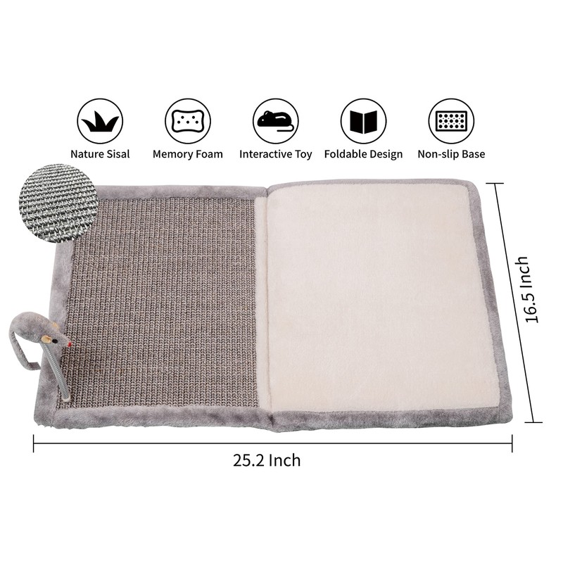 - Great value & foldable design: L 25.2" * W 16.5", this large scratcher mat is in perfect size for all age cats. Foldable design makes it easy to storage and move, after folded only 12.6" *16.5", easy to assemble and save your space.