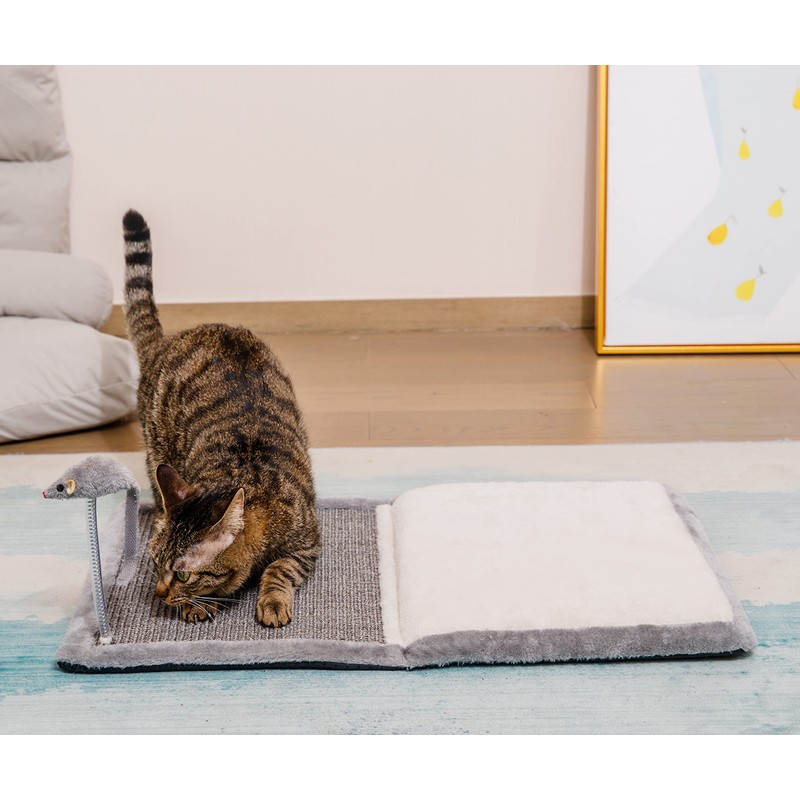 Happi N Pets Cat Scratcher Mat, 3 in 1 Foldable Sisal Mat for Small & Medium Cats, Portable Natural Scratcher with Memory Foam Bed & Interactive Toy, Rectangular, Grey