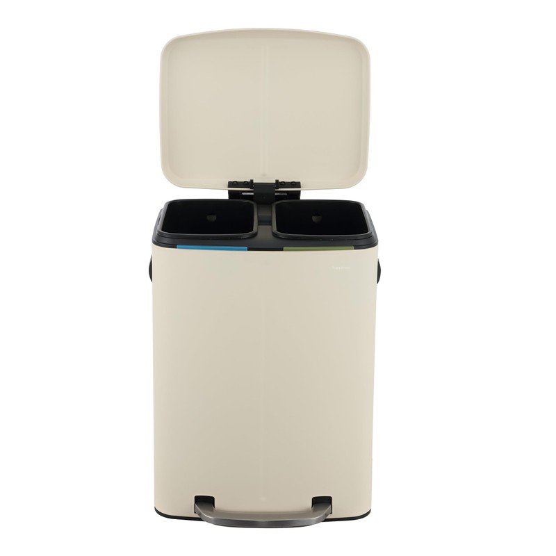 happimess HPM1005F Marco Rectangular 10.6-Gallon Double Bucket Trash Can with Soft-Close Lid, Fingerprint Resistant, Modern, Minimalistic for Home, Kitchen, Office, Bathroom, Limestone Beige