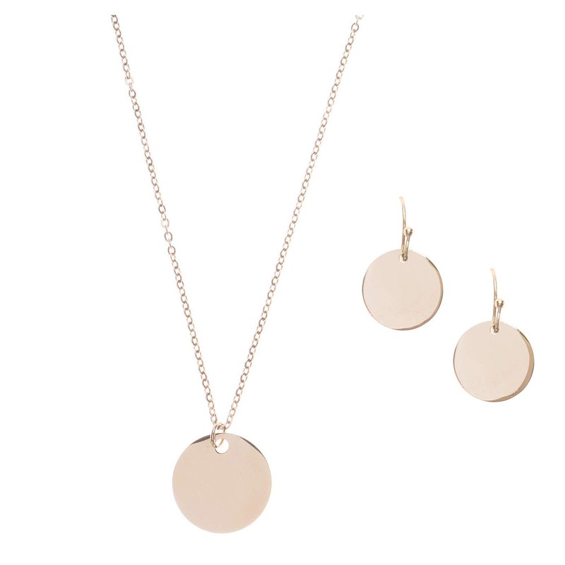 - Features: Trendy jewellery set in minimalist circle design: rose gold chain with circle pendant and small hanging earrings - versatile and suitable for everyday use and any occasion.