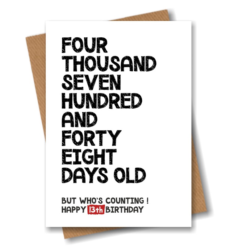 Happy 13th Birthday Card - 4748 Days Old But Who's Counting