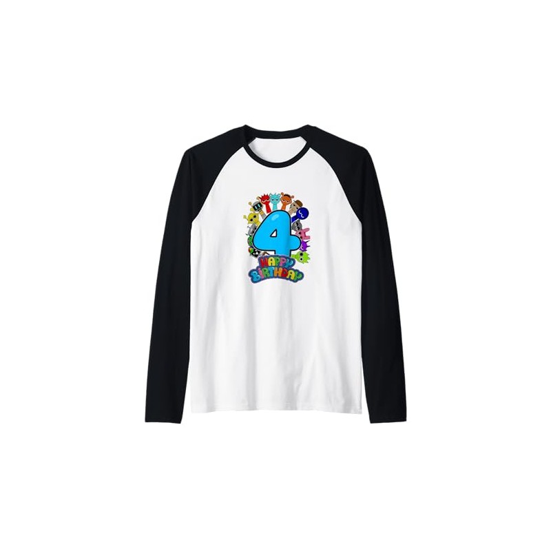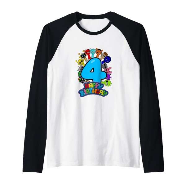 Happy 4th Birthday Sprunky! | Simon Funbot Oren Pinki Raglan Baseball Tee